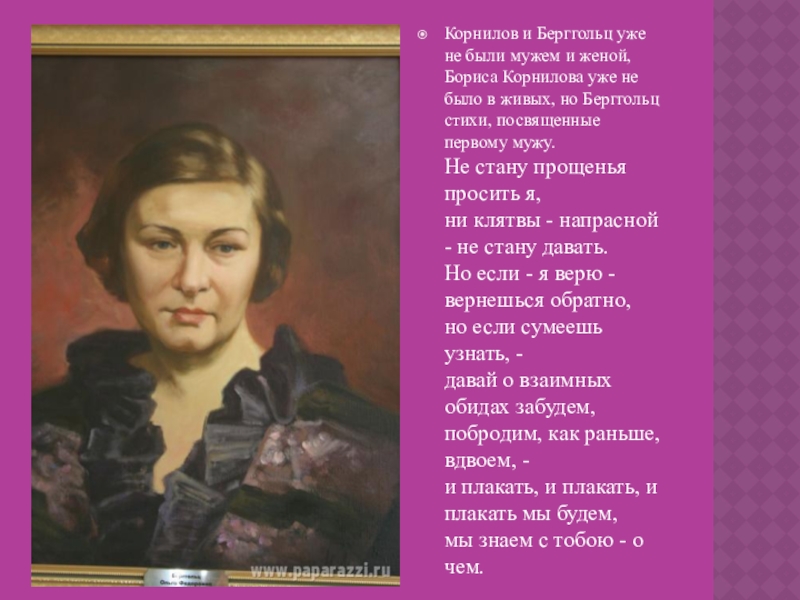 Слайд 4Корнилов и Берггольц уже не были мужем и женой, Бориса Корнилова
