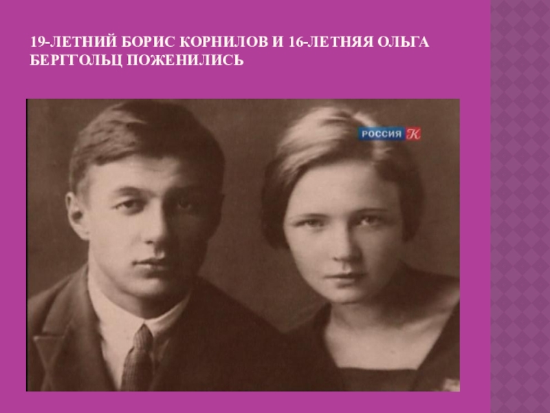 Слайд 319-летний Борис Корнилов и 16-летняя Ольга Берггольц поженились