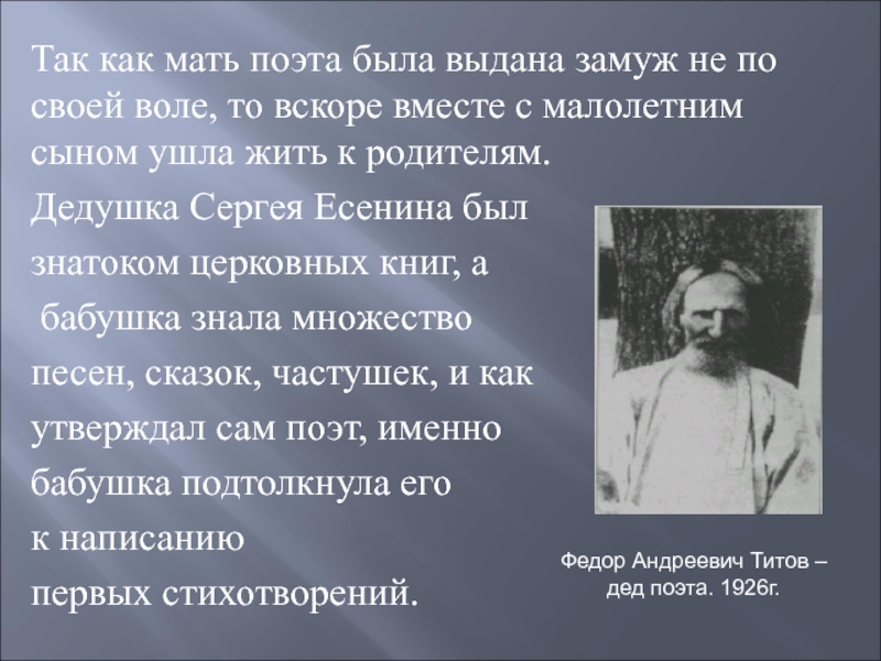 Федор Андреевич Титов –дед поэта. 1926г.
