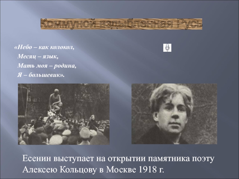 Есенин выступает на открытии памятника поэту Алексею Кольцову в Москве 1918 г.