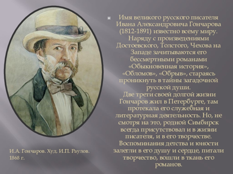 И.А. Гончаров. Худ. И.П. Раулов. 1868 г.