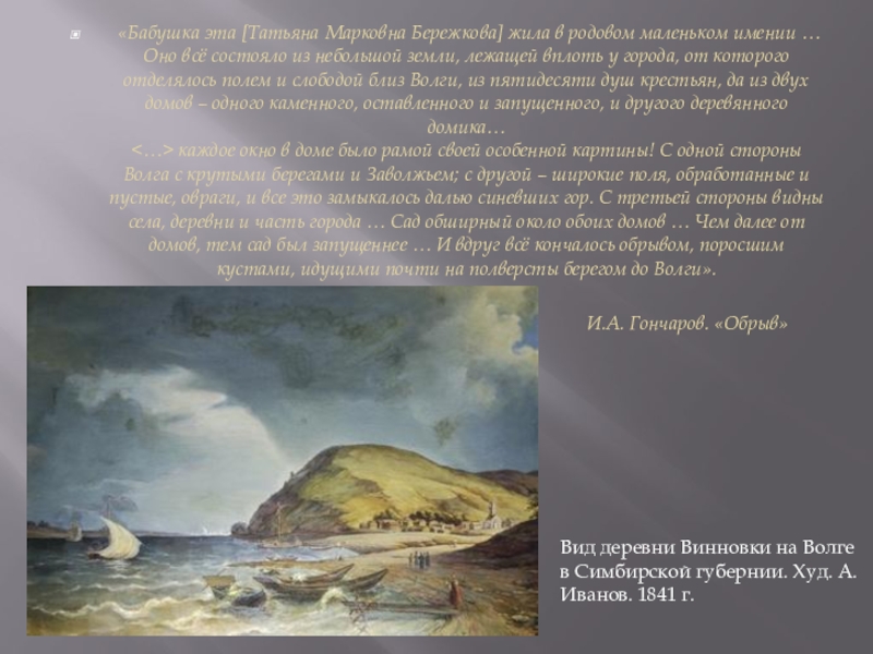 Вид деревни Винновки на Волге в Симбирской губернии. Худ. А. Иванов. 1841 г.