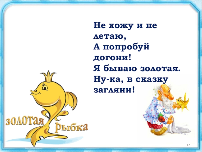 Слайд 12Не хожу и не летаю, А попробуй догони! Я бываю золотая. Ну-ка, в сказку
