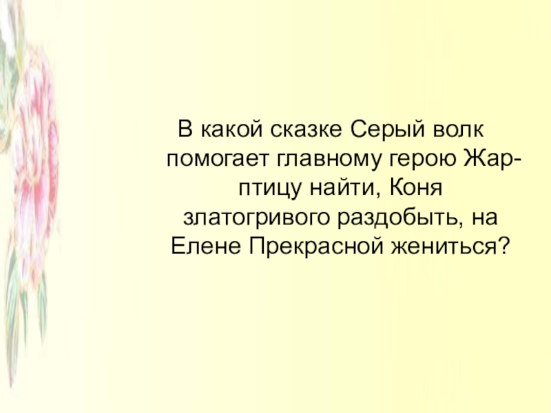 Слайд 18В какой сказке Серый волк помогает главному герою Жар-птицу найти, Коня
