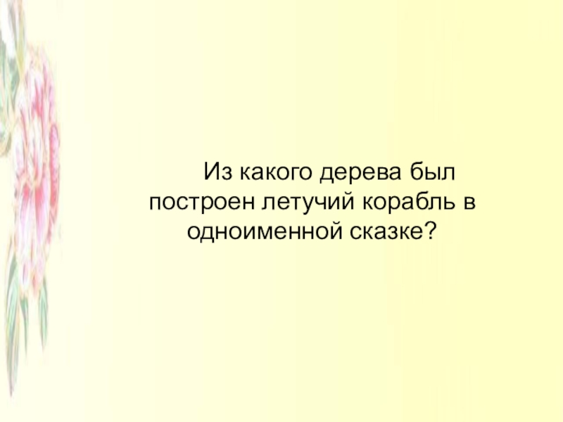 Слайд 6 Из какого дерева был построен летучий корабль в одноименной сказке?