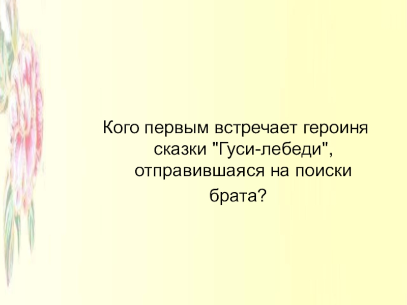 Слайд 10Кого первым встречает героиня сказки "Гуси-лебеди", отправившаяся на поиски