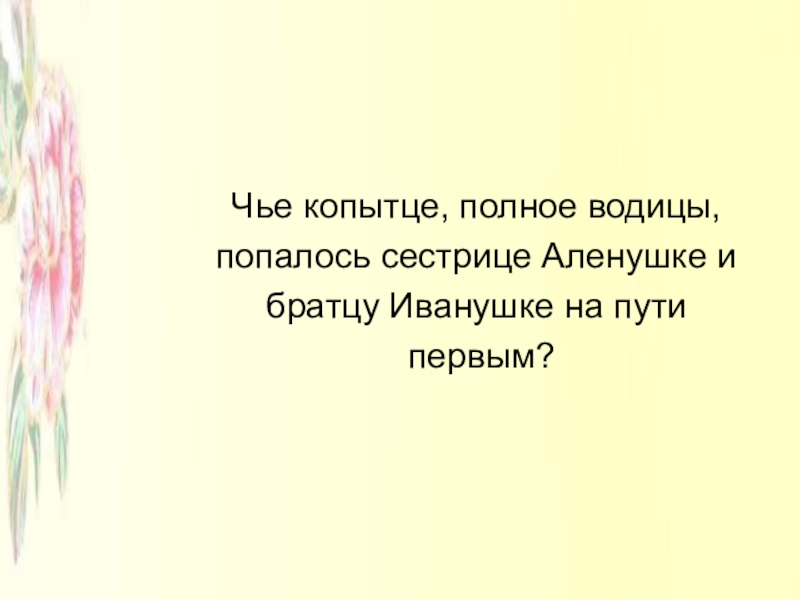 Чье копытце, полное водицы, попалось сестрице Аленушке и братцу Иванушке на пути первым?