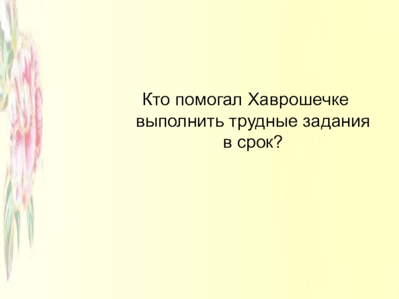Слайд 20Кто помогал Хаврошечке выполнить трудные задания в срок?