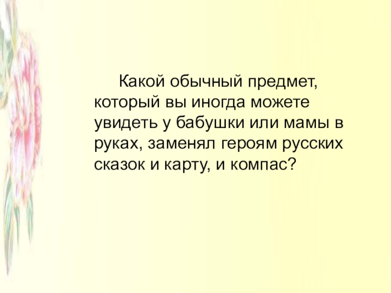 Какой обычный предмет, который вы иногда можете увидеть у бабушки или мамы в руках, заменял героям русских сказок и карту, и компас?
