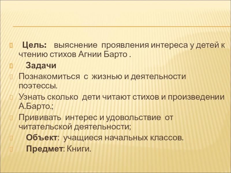 Слайд 3 Цель: выяснение проявления интереса у детей к чтению стихов
