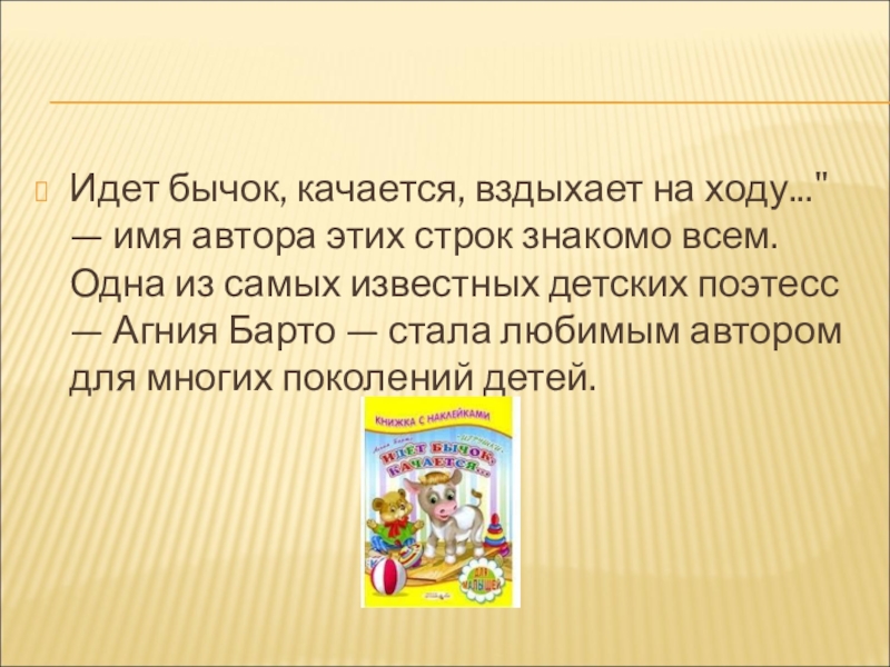 знакомо всем. Одна из самых известных детских поэтесс — Агния Барто — стала любимым автором для многих поколений детей.