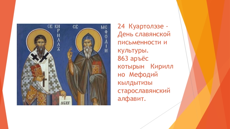 Слайд 424 Куартолэзе - День славянской письменности и культуры. 863 аръёс котырын