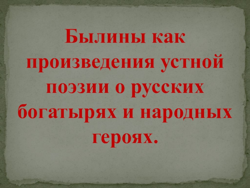 Слайд 3Былины как произведения устной поэзии о русских богатырях и народных героях.
