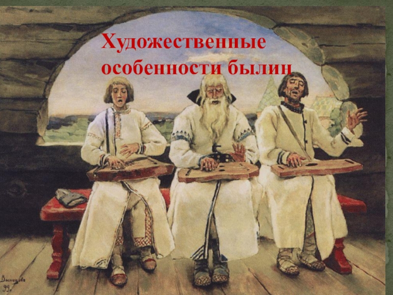 - Былины складываются речетативом, в них нет рифмы, но созвучны окончания слов; - былины сюжетны, большую роль
