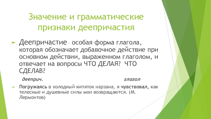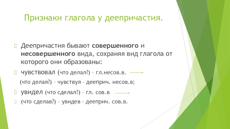 Задание: образуйте от глаголов совершенного вида деепричастия совершенного вида при помощи суффиксов –в, -вши, -ши, а(я): принести, влезть, просохнуть, нахмуриться, прочтут, услышать, прийти.