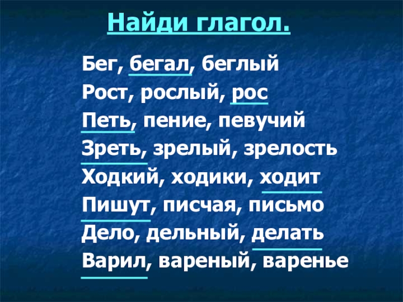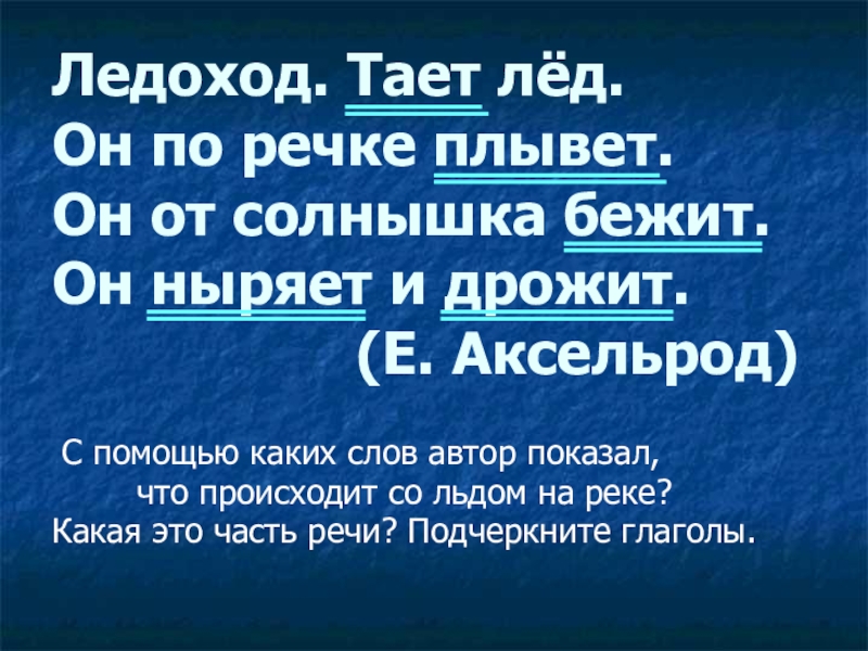 Какая это часть речи? Подчеркните глаголы.