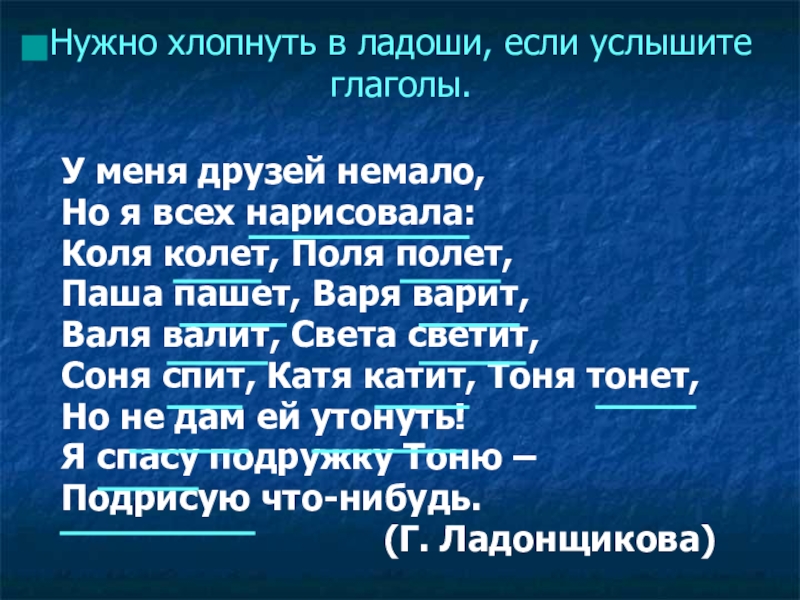 Нужно хлопнуть в ладоши, если услышите глаголы.
