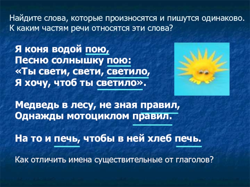 Как отличить имена существительные от глаголов?