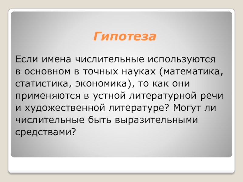 ГипотезаЕсли имена числительные используются в основном в точных науках (математика, статистика, экономика), то как они применяются в