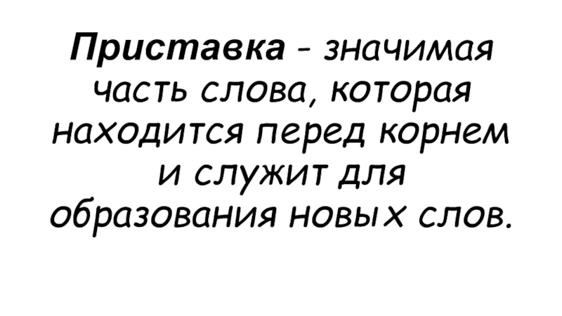 Приставка - значимая часть слова, которая находится перед корнем и служит для образования новых слов.
