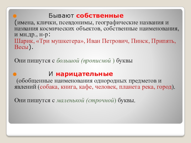 псевдонимы, географические названия и названия космических объектов, собственные наименования, и мн.др., н-р: