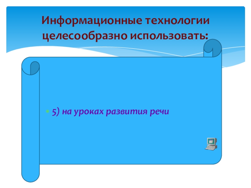 Информационные технологии целесообразно использовать:  5) на уроках развития речи