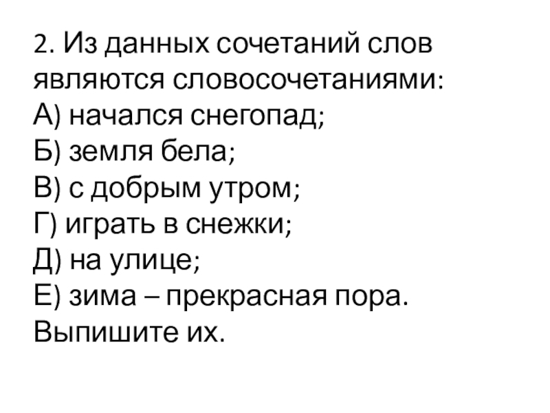 Г) сочетание двух (и более) самостоятельных слов, связанных по смыслу и грамматически.