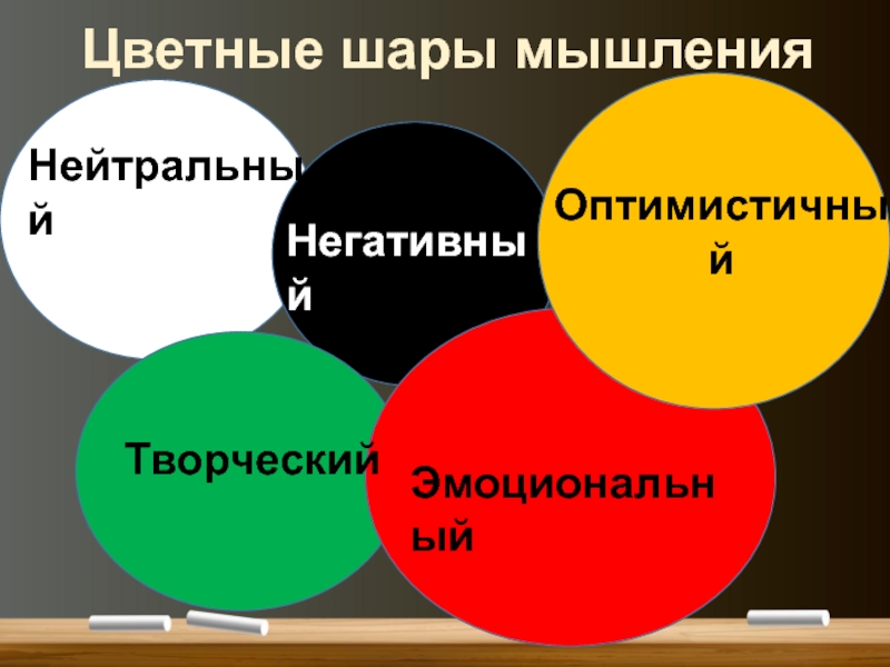 Цветные шары мышления ОптимистичныйНегативныйНейтральныйТворческийЭмоциональный