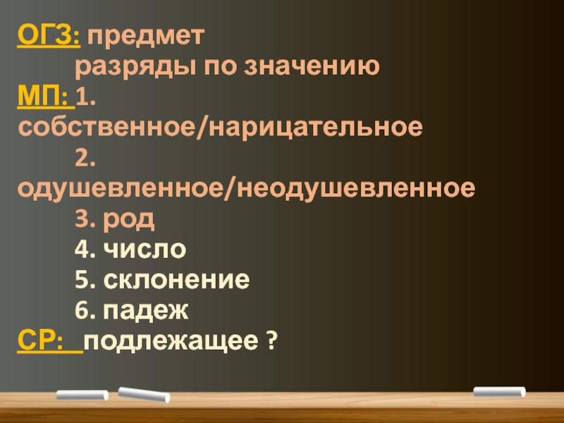 Слайд 27ОГЗ: предмет разряды по значению МП: 1. собственное/нарицательное