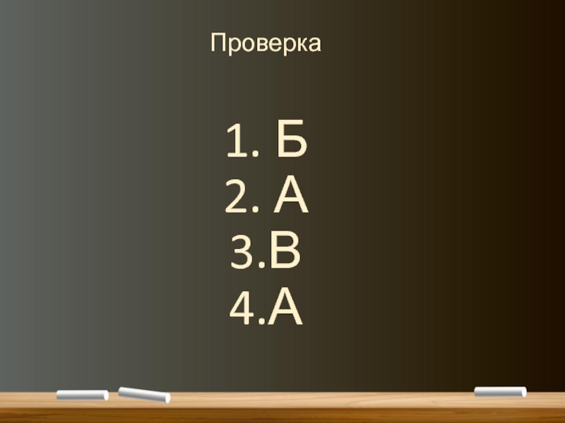Слайд 22Проверка 1. Б 2. А 3.В 4.А