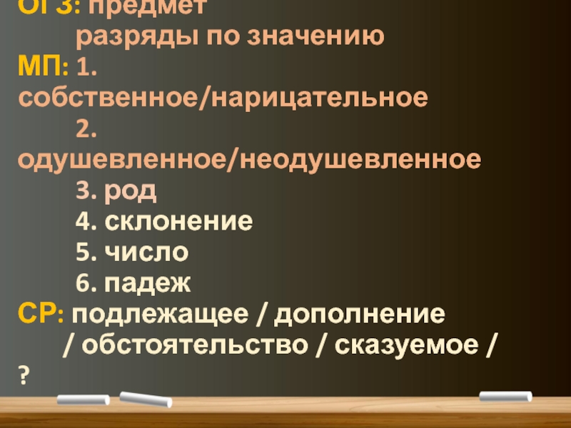 Слайд 3ОГЗ: предмет разряды по значению МП: 1. собственное/нарицательное