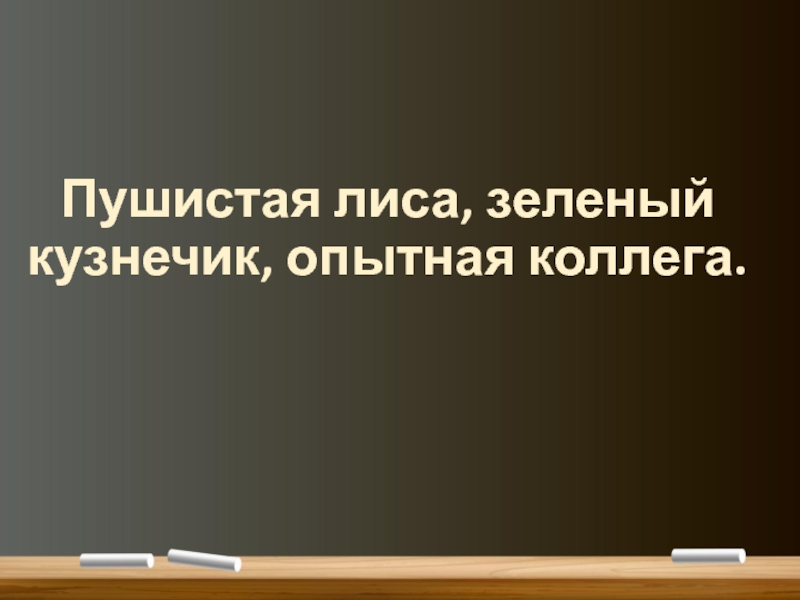 Слайд 13Пушистая лиса, зеленый кузнечик, опытная коллега.
