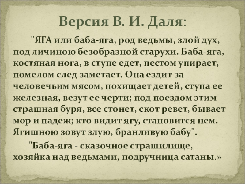 Слайд 5 "ЯГА или баба-яга, род ведьмы, злой дух,