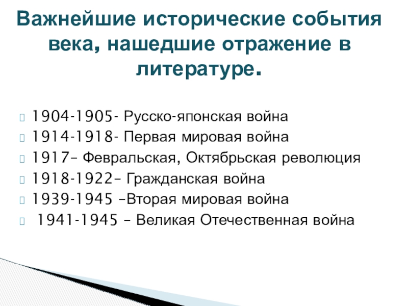Важнейшие исторические события века, нашедшие отражение в литературе.