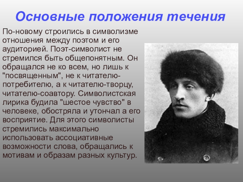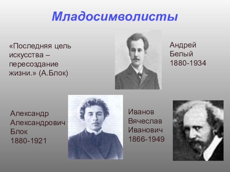 и искусстве. Его цель – создание поэтической культуры, содействующей духовному возрождению человечества, преображению мира средствами искусства.