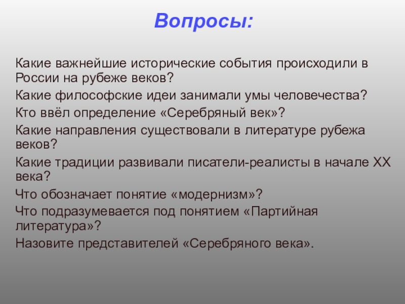 Слайд 26Переход от эпохи классической русской литературы к новому литературному времени сопровождался