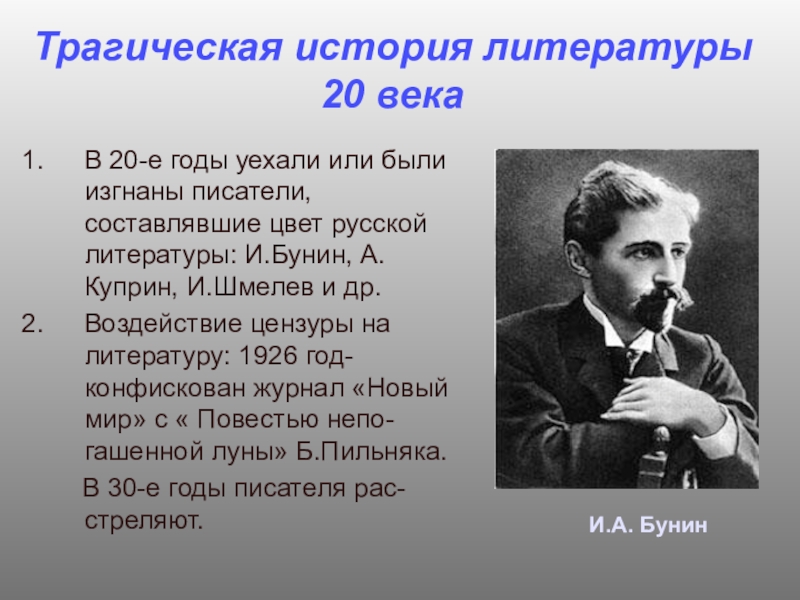 были изгнаны писатели, составлявшие цвет русской литературы: И.Бунин, А.Куприн, И.Шмелев и др.