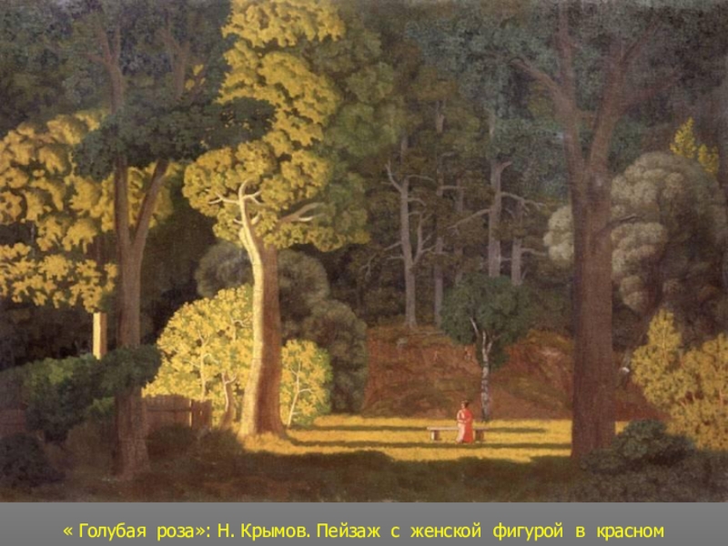 Слайд 14« Голубая роза»: Н. Крымов. Пейзаж с женской фигурой в красном