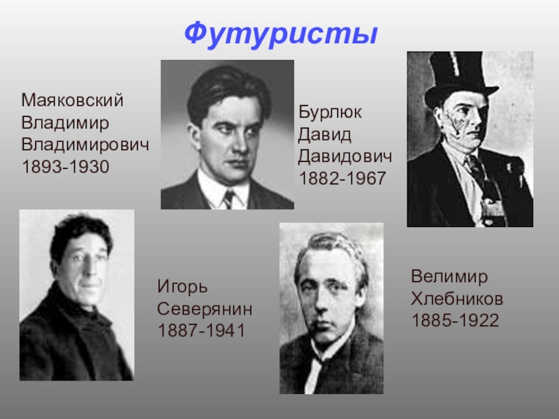 (его авторами были Д. Бурлюк, В. Хлебников, В. Каменский). Вместе с В. Маяковским и А. Крученых эти поэты вскоре составили группировку кубофутуристов, или поэтов "Гилеи"