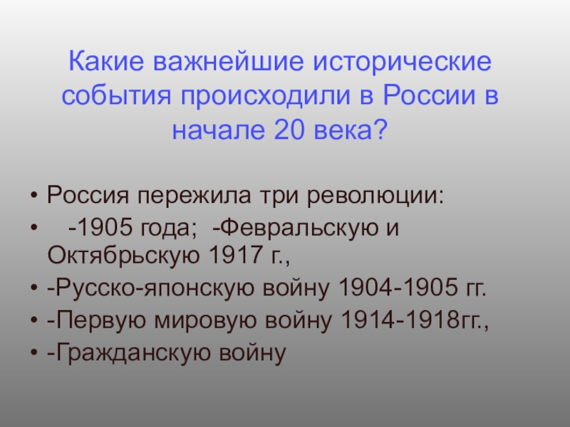 Какие важнейшие исторические события происходили в России в начале 20 века?