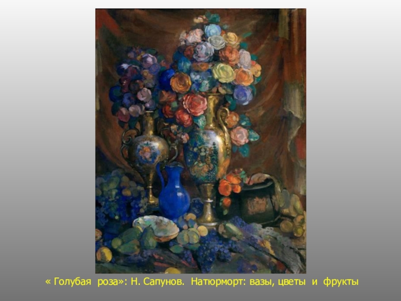 Слайд 15« Голубая роза»: Н. Сапунов. Натюрморт: вазы, цветы и фрукты