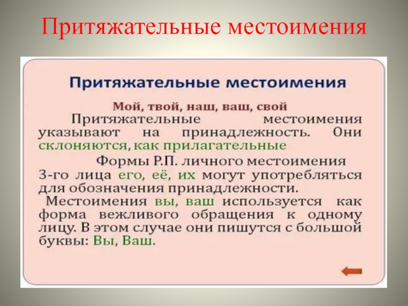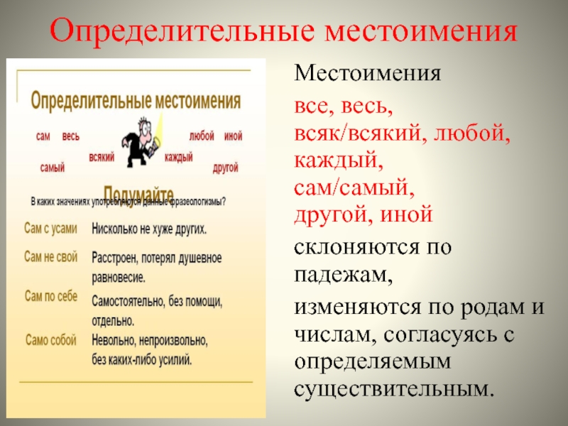 Большинство местоимений в русском языке изменяется по падежам, многие местоимения — по родам и числам.