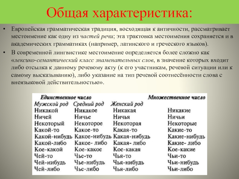 из частей речи; эта трактовка местоимения сохраняется и в академических грамматиках (например, латинского и греческого языков).