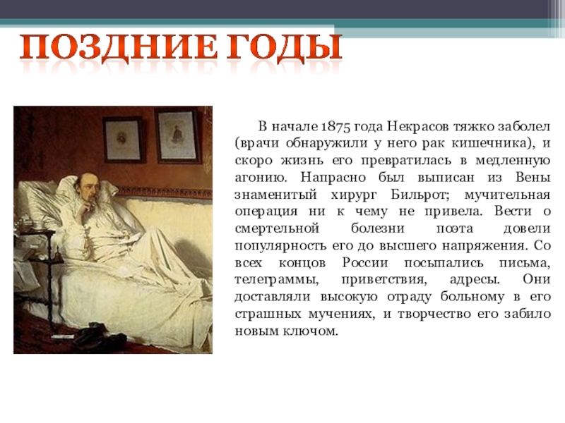 Слайд 6 В начале 1875 года Некрасов тяжко заболел (врачи
