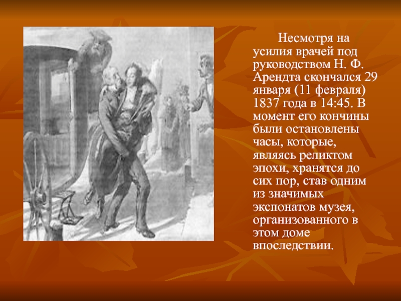 Слайд 38 Несмотря на усилия врачей под руководством Н. Ф. Арендта скончался 29