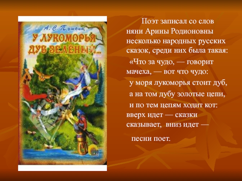Слайд 26 Поэт записал со слов няни Арины Родионовны несколько народных русских