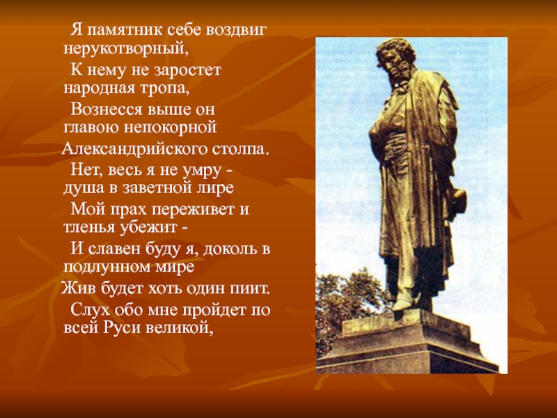 Слайд 39 Я памятник себе воздвиг нерукотворный,