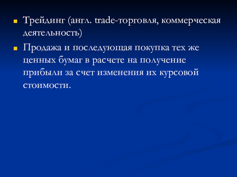 Слайд 6Трейдинг (англ. trade-торговля, коммерческая деятельность)