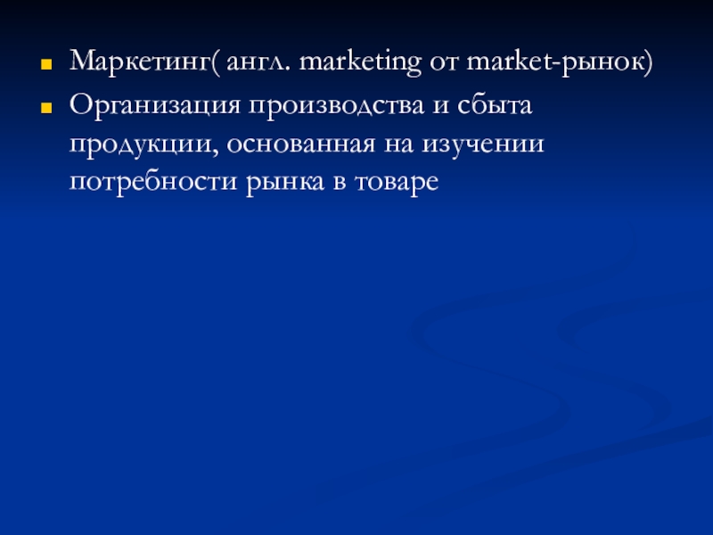 Слайд 5Маркетинг( англ. marketing от market-рынок)