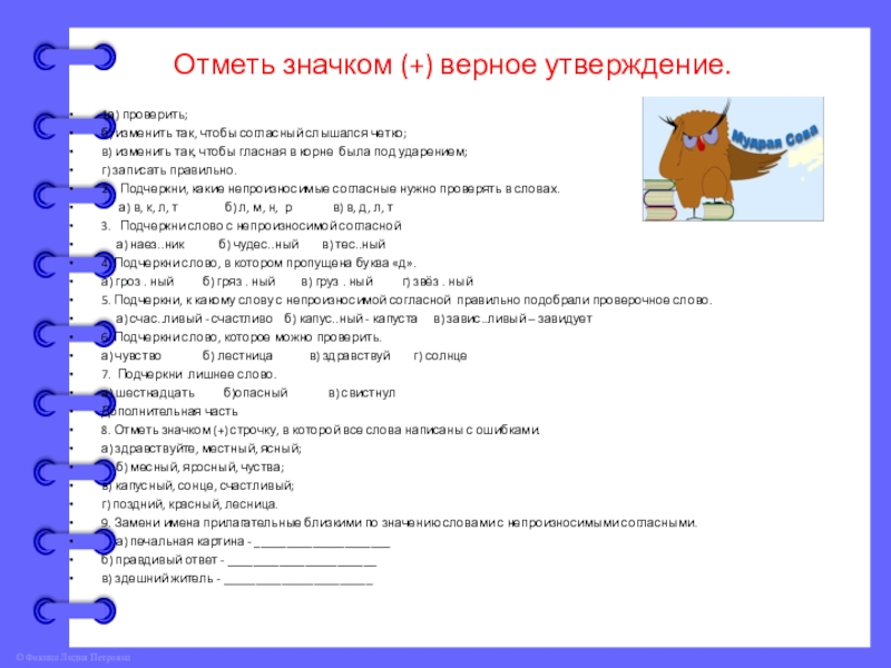 2. Подчеркни, какие непроизносимые согласные нужно проверять в словах.